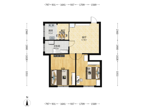 房屋戶型: 2 室2廳 1 廚1衛(wèi)